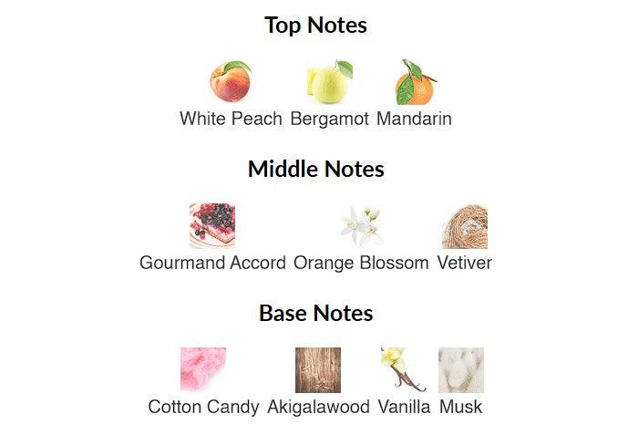 Base notes are Cotton Candy, Akigalawood, Vanilla and Musk.